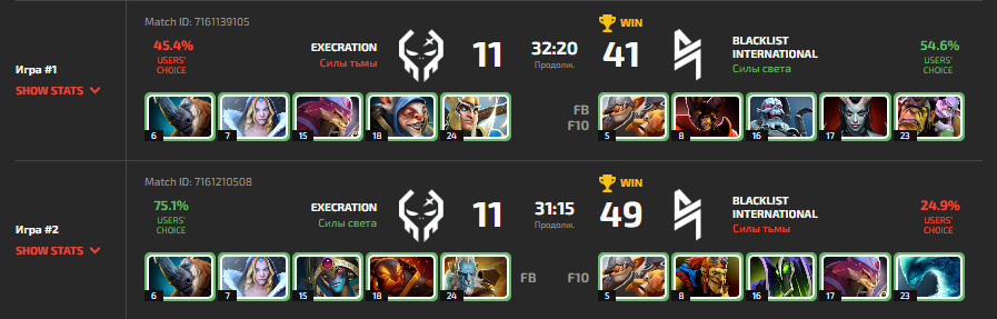 На первой карте Execration выбрали Meepo для Palos, а Blacklist ответили на это Alchemist. Однако, реализовать этого героя у Execration не получилось. Blacklist выбились в лидеры, показав уверенную игру.