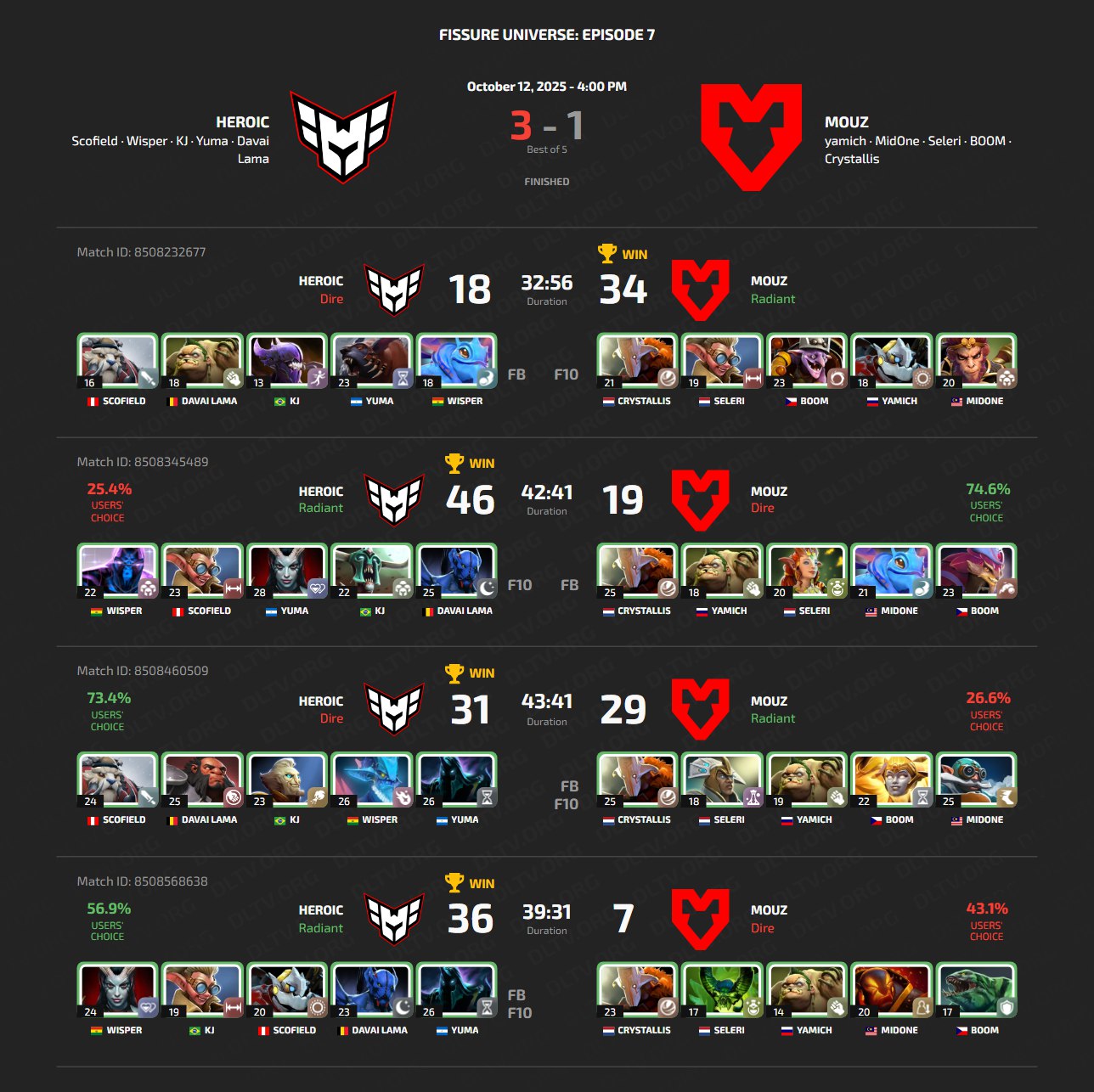 Na final, Heroic enfrentou MOUZ. No primeiro mapa, a nova formação liderada por Seleri mostrou um bom desempenho no Dota. Crystallis já tinha uma sequência de 16 vitórias com Juggernaut até a final, enquanto MidOne e BOOM mostraram uma performance confiante.