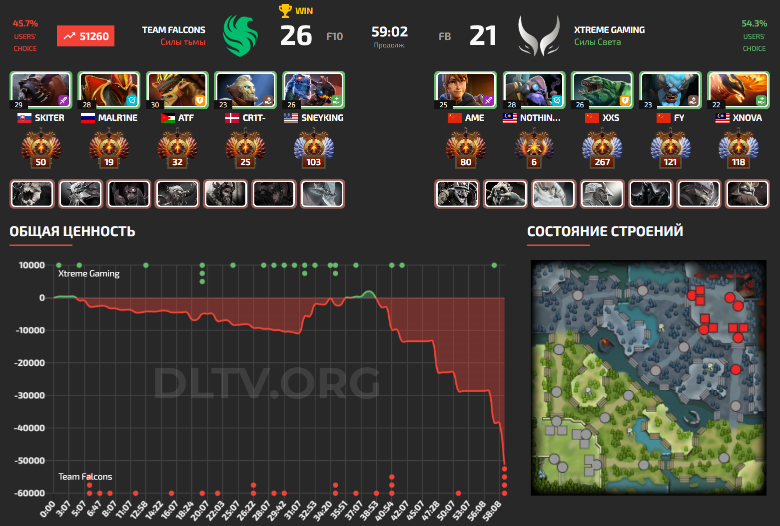 Os finalistas do The International 2025 - Team Falcons e Xtreme Gaming se encontraram pela primeira vez após a grande final. Sua partida foi a mais longa do torneio, com Xtreme Gaming escrevendo GG apenas aos 60 minutos. O jogo foi seco em abates, mas interessante. Team Falcons venceram as linhas e dominaram no início, mas graças a um excelente período entre os 30 e 40 minutos, Xtreme Gaming recuperaram a desvantagem, levando o jogo a um empate. Aos 41 minutos, NothingToSay cometeu um erro grave, permitindo que Team Falcons pressionassem Xtreme Gaming na base e acumulassem uma vantagem de 30 mil. Na luta decisiva, Team Falcons superaram os chineses.