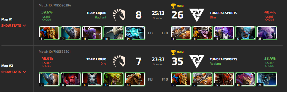 На первой карте Tundra взяли сигнатурного Timbersaw для Malr1ne в мид. Даже 24 выбор героя для Nisha не помог Liquid. С 15 минуты Timbersaw пилил всех и все, остановить его было невозможно. 16/0/7 от Malr1ne и лёгкая победа за 25 минут для Tundra.