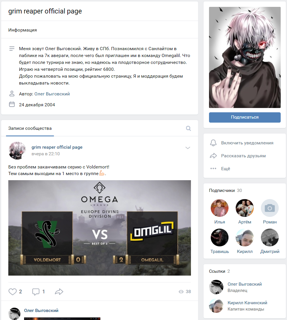 Trying to figure out who is currently playing on the grim reaper account, you can find on the ??Omegalil official VK page a mention of Oleg "grim reaper" Vygovsky and his fan group.